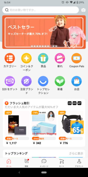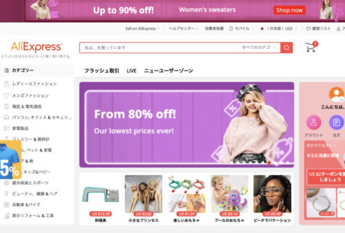 AliExpressは中国のアリババグループにより運営されている、ショッピングサイト。