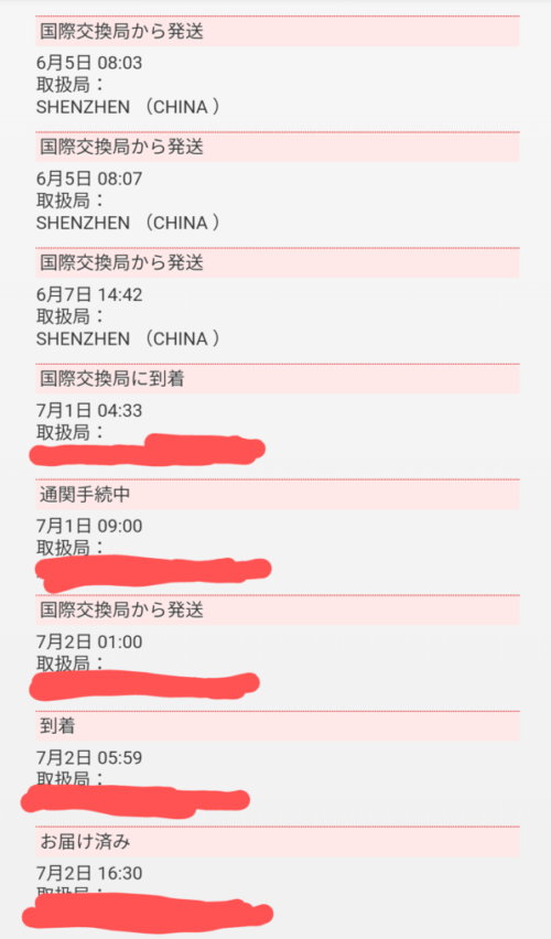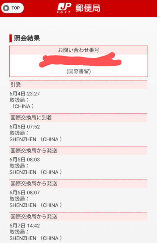 China Post Registered Air Mailの場合、日本郵便のHPで追跡ができた!